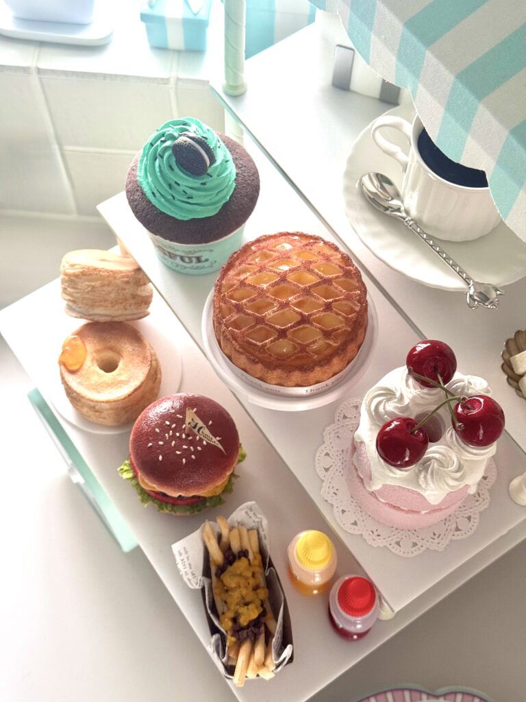 ホットビスケットの層の表現や、ハンバーガーのバンズの質感、アップルパイの構造など、一つひとつのパーツにしっかりと向き合い、素材や技法を工夫しながら制作されている様子が伝わってきます。